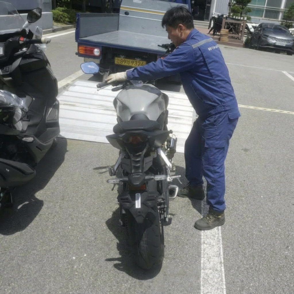 용달의민족 X Z-바이크탁송 바이크 탁송 전문가에게 맡기세요 탁송 실전 경험 10년이상 매일 전국에 100건 이상 탁송 바이크 종류·거리·상황별 경험이 누적된 탁송 노하우 견적 받아보기 이런적 있지 않으셨나요? 대형 바이크인데 리프트 발판이 짧아 상차가 어려운경우 고정 장비 없이 끈만으로 묶어 이동한 경우 주행 중 흔들림 발생 핸들 각도 고려 없이 묶은 경우 핸들 틀어짐 발생 Z바이크탁송 X 용달의민족은 다릅니다 바이크 전용 리프트 차량→ 대형 바이크도 무리 없이 상차 가능 탁송 경험 있는 기사→ 차종·무게·균형 고려한 적재 파손 보험 가입→ 파손 시 보상 기준 적용 바이크 탁송, 이렇게 진행됩니다 STEP 1 정보 접수차종 / 출발지 / 도착지 / 일정 STEP 2 기사 배정 및 픽업일정 확정 후 기사 배정 현장 인수 확인 STEP 3 안전 운송 & 인계도착지 하차 상태 확인 후 인계 오토바이탁송 견적 신청 서비스일 선택고객명연락처 *0 / 11출발지 *상세주소도착지 *상세주소오토바이 모델명 *오토바이 배기량 *개인정보수집 및 이용동의 * 개인정보수집 및 이용동의 내용보기 취소/환불규정 동의 * 취소/환불규정 동의 내용보기 이사화물 파손 및 보상 기준 * 이사화물 파손 및 보상 기준 내용보기 입력완료